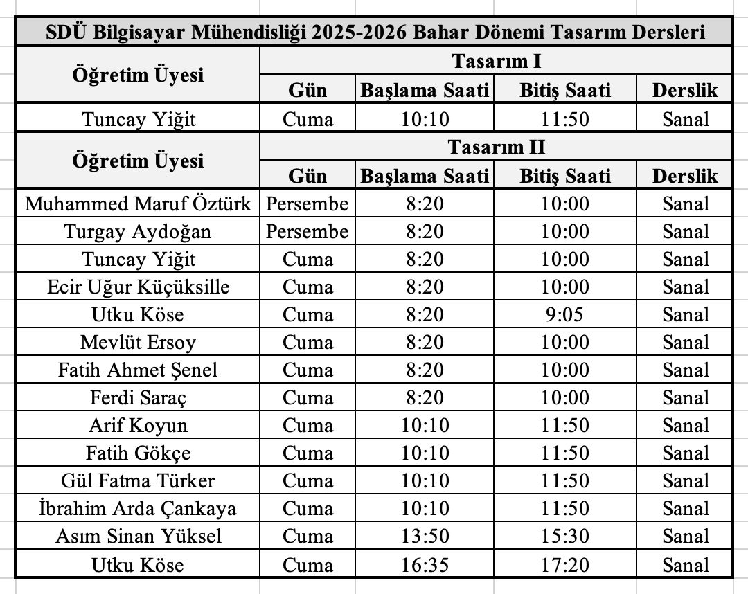 Not 2: Ders saatlerinde ve günlerinde gerçekleşebilecek değişiklikler için güncel sayfayı belirli aralıklarla kontrol ediniz.