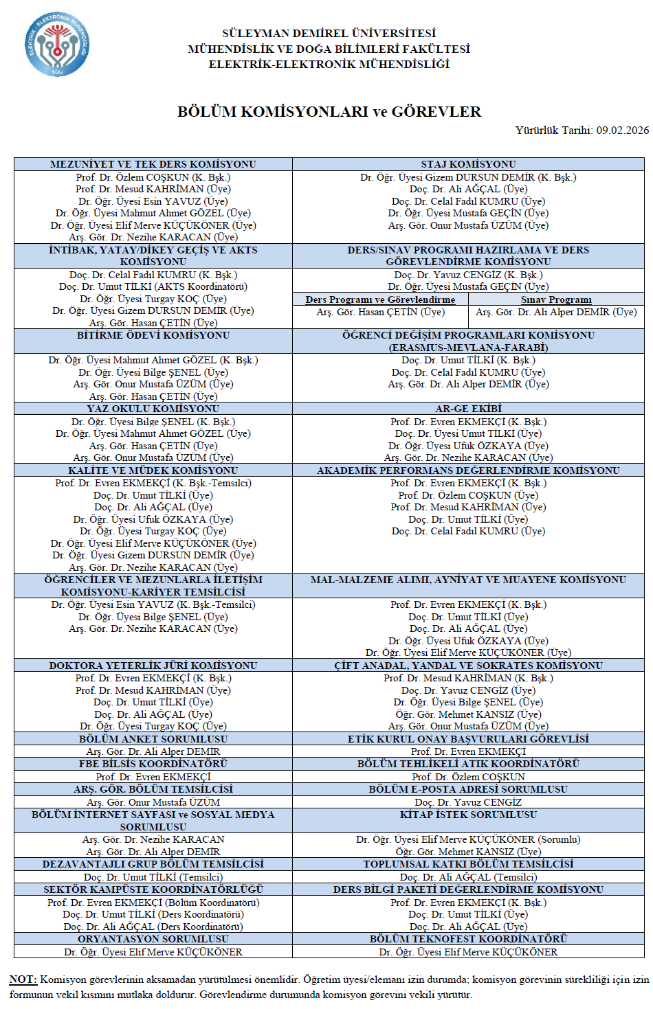 Elektrik-Elektronik Mühendisliği Bölümü Akademik ve İdari Personeli