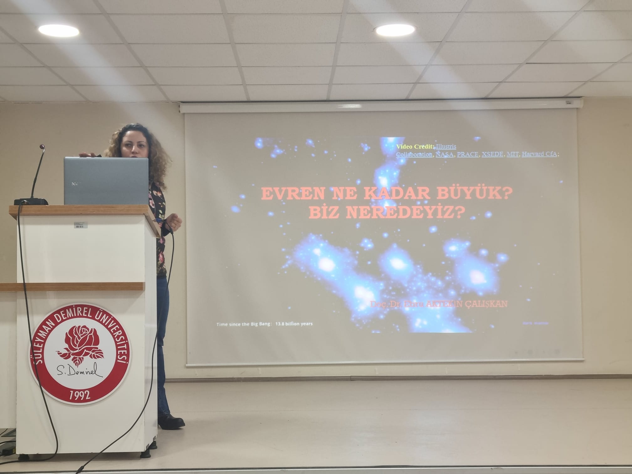 Fizik Bölüm Seminerleri kapsamında Bölüm Öğretim Üyesi Doç Dr. Ebru Aktekin Çalışkan tarafından “EVREN NE KADAR BÜYÜK? BİZ NEREDEYİZ?" isimli bir sunumu gerçekleştirilmiştir.