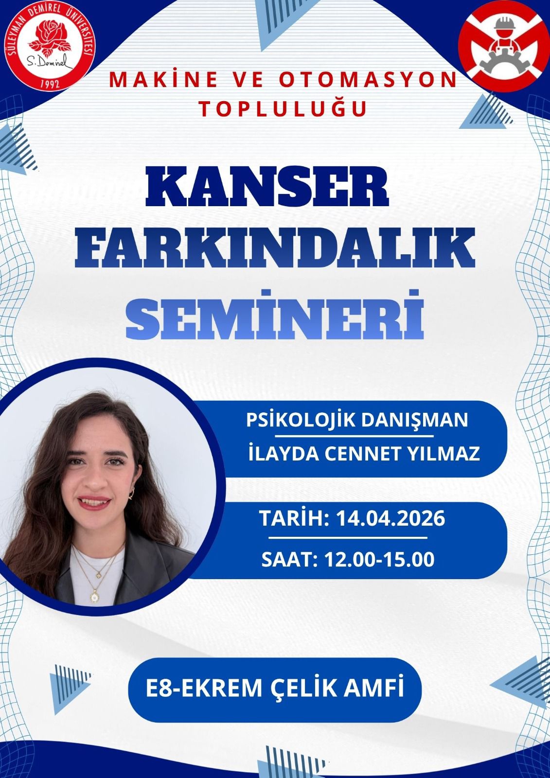 SDÜ Makine ve Otomasyon Topluluğu olarak, sadece teknik alanda değil, hayatın her alanında farkındalık yaratmaya devam ediyoruz. Sağlığımızı korumak ve bu önemli konuda bilinçlenmek adına düzenlediğimiz seminerimize davetlisiniz.