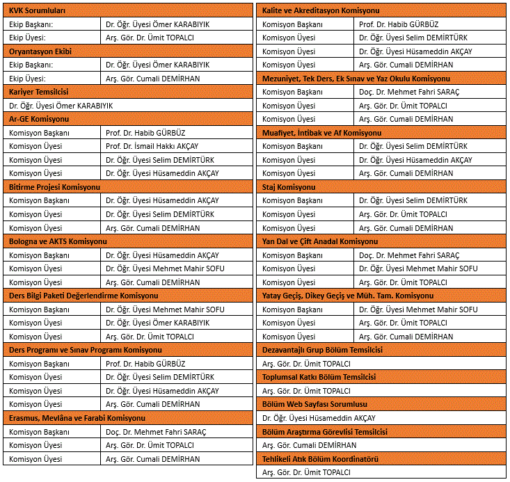 Prof. Dr. Habib GÜRBÜZ (Başkan, Bölüm Başkanı, Kalite Ekibi Başkanı)