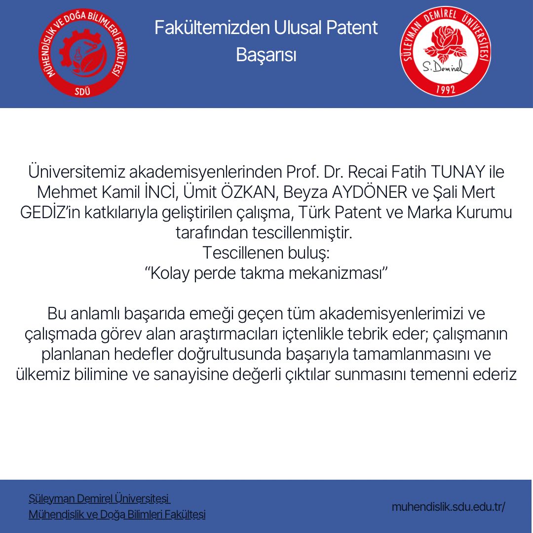 Mühendislik ve Doğa Bilimleri Fakültesi akademisyenleri, yürüttükleri yenilikçi çalışmalar sonucunda ulusal patent almaya hak kazanarak önemli bir başarıya imza attı.