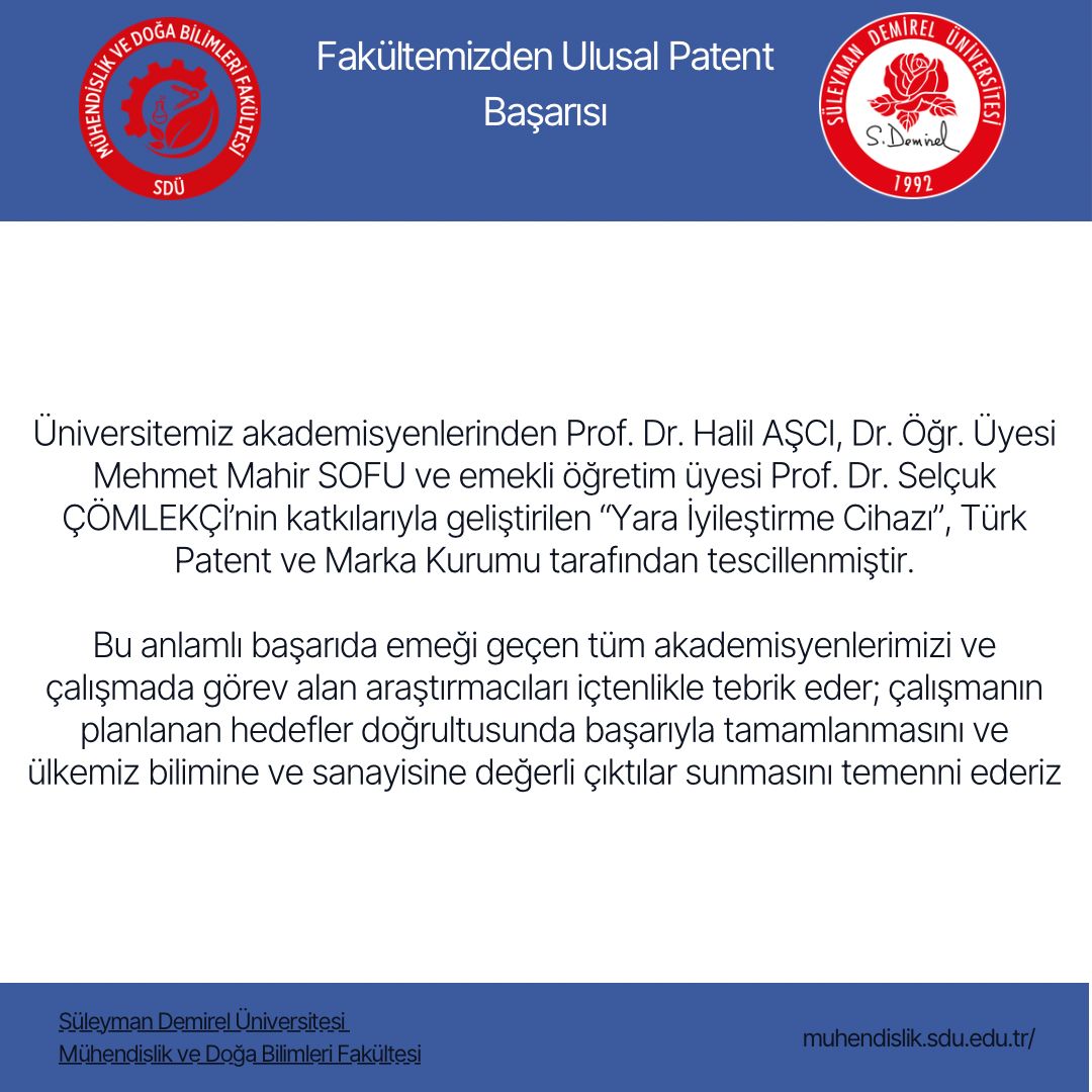 Patentler, fakültemizin bilimsel üretkenliğini, Ar-Ge kapasitesini ve yenilikçi yaklaşımını bir kez daha ortaya koyarken; üniversite-sanayi iş birliklerine de katkı sağlamayı hedeflemektedir.