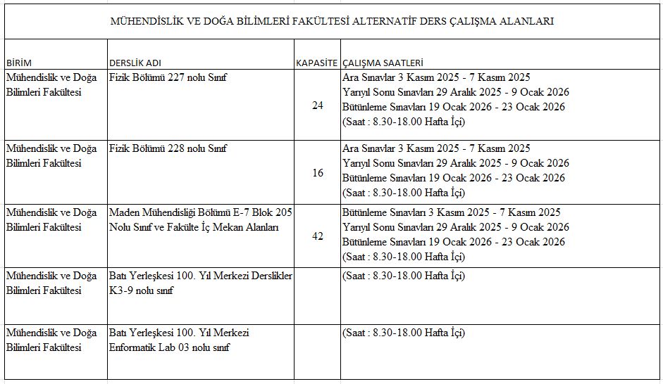 Mühendislik Ve Doğa Bilimleri Fakültesi alternatif ders çalışma alanları aşağıda listelenmiştir. Çalışmalarınızda başarılar dileriz.